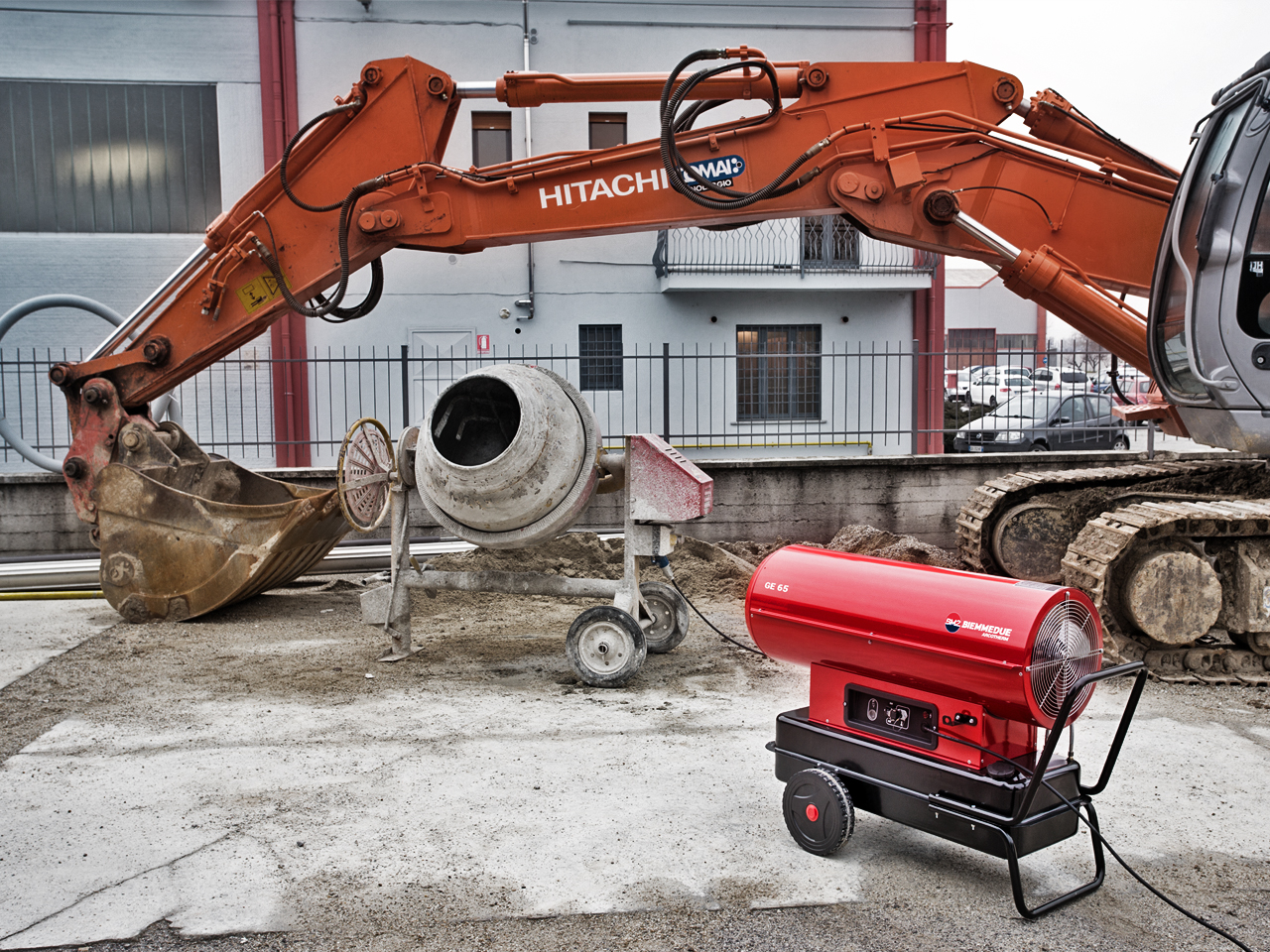 GENERADOR DE AIRE CALIENTE GE 65 puede utilizarse en instalaciones abiertas o bien ventiladas, por ejemplo, en obras, fábricas y almacenes. Está diseñado para el calentamiento de alto rendimiento de locales no residenciales, el calentamiento de hormigón o el suelo durante la construcción y el trabajo de reparación. En poco tiempo, puede proporcionar un gran espacio con calor. Una cámara de combustión abierta emite productos nocivos junto con aire caliente, por lo que no se puede usar en habitaciones cerradas con personas. Mover y poner en marcha no requiere mucho esfuerzo y conocimiento. A partir pulsando un solo botón, después de purgar el sistema se produce y la ignición del combustible diesel comienza a quemar de manera uniforme en la cámara, y un ventilador genera un flujo de aire y sopla masa caliente en el espacio circundante. Ya en el primer minuto de funcionamiento de un calentador de combustible líquido, se siente una alta eficiencia del sistema. La instalación de esta máquina debe realizarse en salas con posibilidad de ventilación, con lo que se obtienen los productos de la combustión. Dado que el proceso de calentamiento directo se usa en el proceso de fabricación, junto con el aire caliente, los elementos de combustión emergen de la boquilla. Si la presión de inyección está equilibrada y el inyector está configurado correctamente, entonces el escape es mínimo, sin excavar ni humo oscuro.
