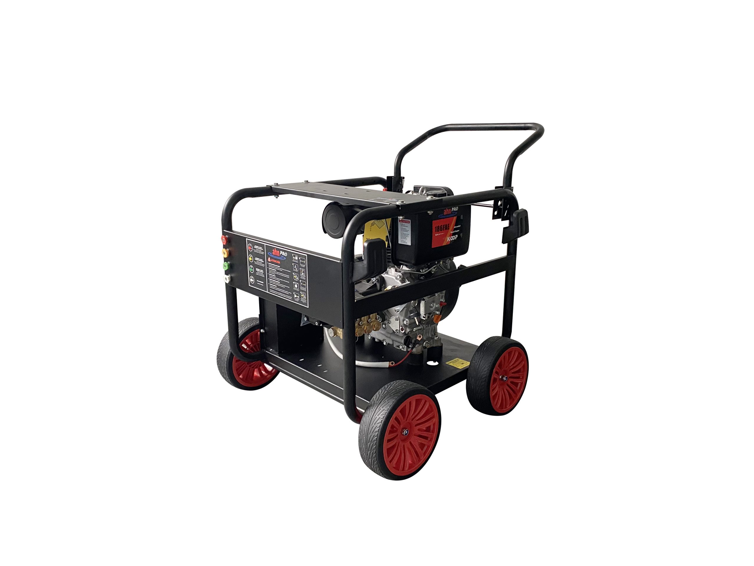 Equipo de Agua fría con Bomba Annovi Reverberi y Chasis Metálico Ruedas , Lanza con pistola automática Las hidrolavadora de Presión AHNPRO estan diseñadas para la limpieza de vehículo, barcos, muros, equipo industriales y más. Impulsado por un motor fiable Honda ofrece un diseño de eje horizontal para durar hasta cinco veces más que los motores de eje vertical. La alta calidad de la bomba . Las Hidrolavadoras AHNPRO Tienen pruebas rigurosas para garantizar el máximo rendimiento, además todos nuestros equipos son probados antes de la entregas .
